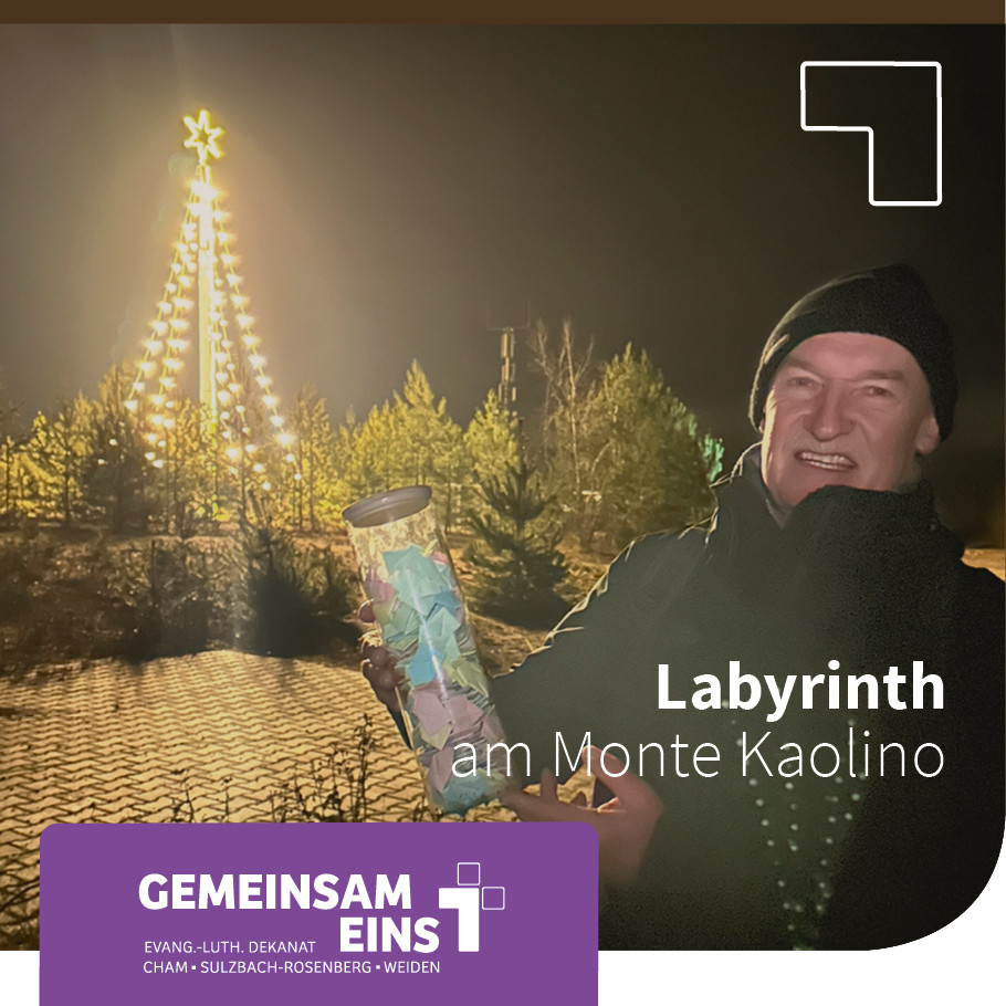 Der Eingang befindet sich direkt hinter dem Kreuz und ein Schild lädt dazu ein auf Weg- und auf Sinnsuche zu gehen in den oft hektischen Tagen des Advents. Manche Wege sind Irrwege. Aber, wer am Ende die Mitte findet, findet dort auch ein Glas mit liebevoll von Monika Flach gestalteten Guten Worten, die Mutmachen und Kraft geben. Kraftvolle Bibelverse, die wiederum einladen über deren Relevanz im eigenen Leben nachzudenken.